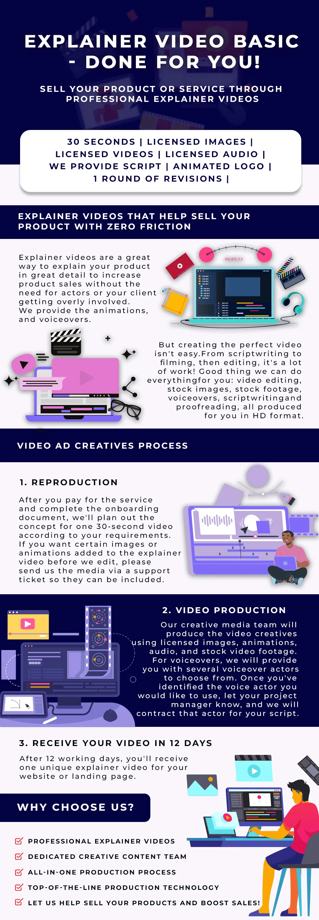 Help sell your product or service through a professionally edited explainer video. Perfect for websites and landing pages.