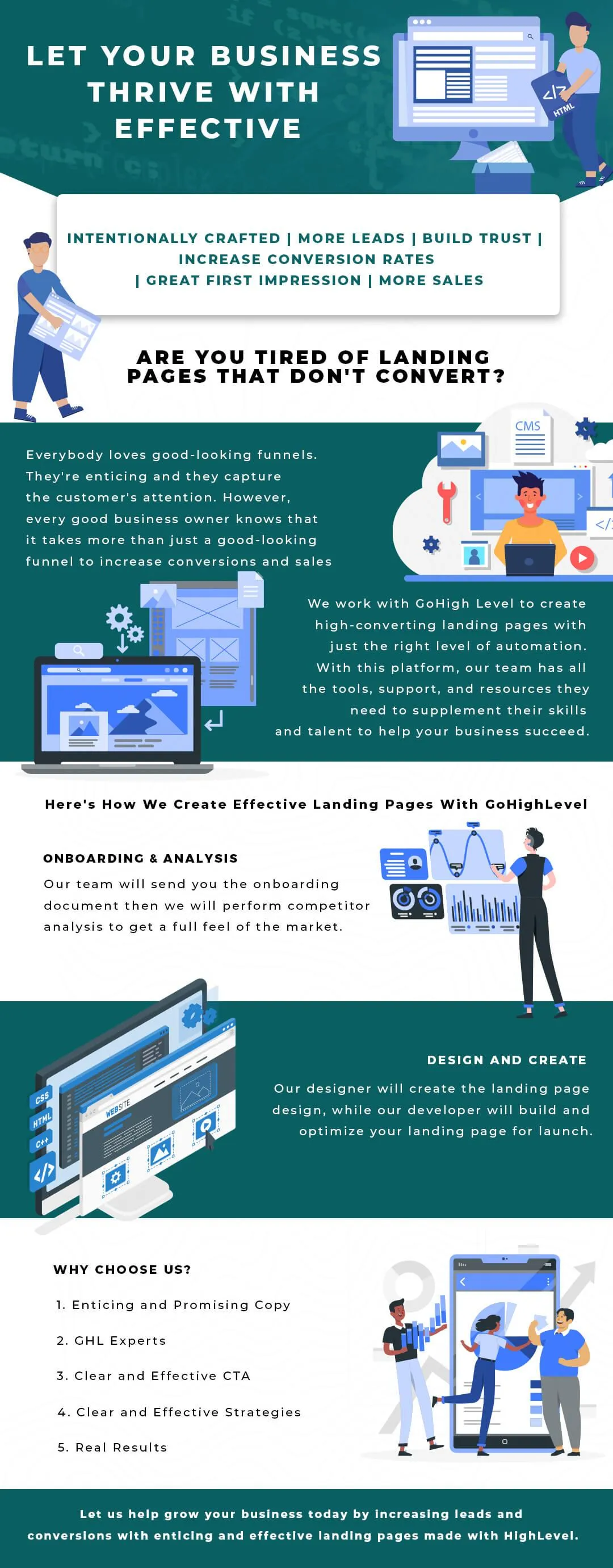 GoHighLevel has grown in popularity as a platform that many agencies have started using to manage their client's workflow. If your agency runs on GoHighLevel and requires a custom funnel built out and automated, we can help! Our service costs $500 per custom landing page and $100 per additional page. We'll involve a graphic design, developer, copywriter, automation specialist, and project manager in a typical landing page build.